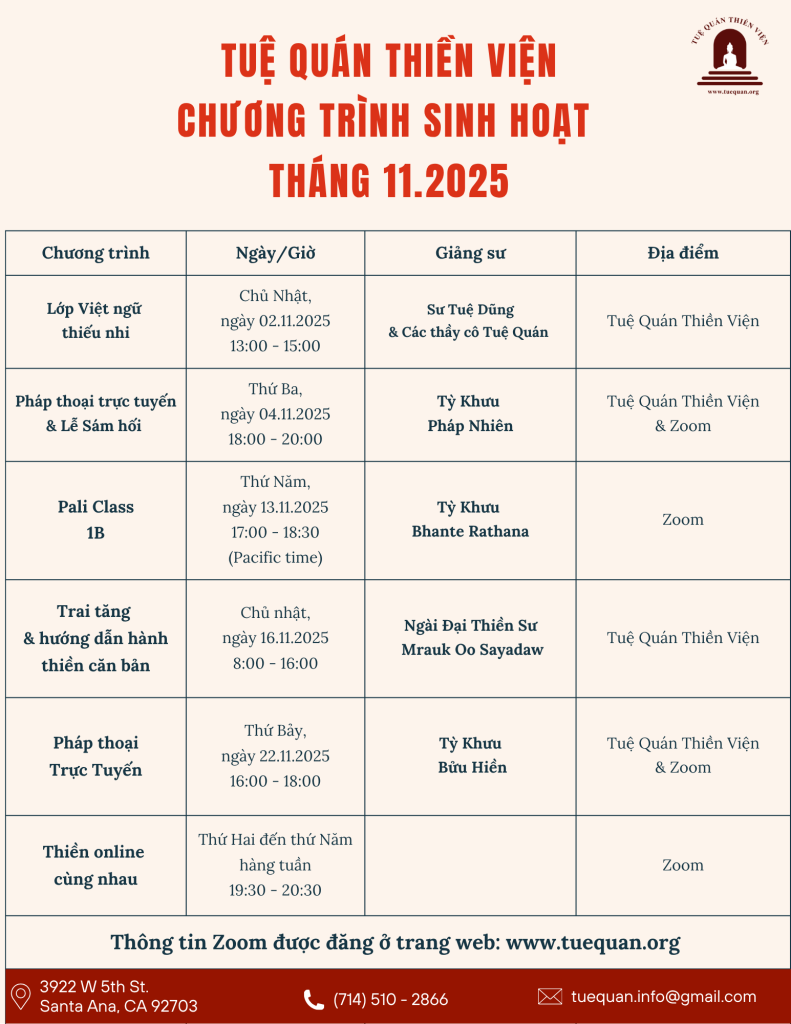 Mời quý Phật Tử đến Tuệ Quán Thiền Viện tham dự